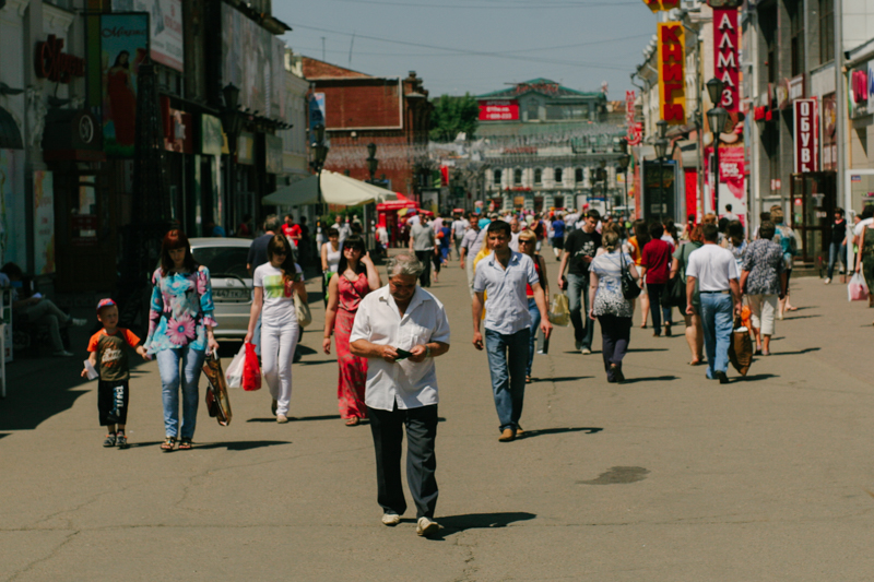 Wszystko to kupujemy na targowiskach i giełdach pełnych Chińczyków. Mam wrażenie, że podczas pobytu w Irkucku widziałem dużo więcej “Kitajców” niż Rosjan. Samo miasto jest pełne kontrastów - przyjdzie nam je jeszcze odwiedzić na koniec naszej podróży, ale od początku rzucały mi się w oczy stare, parterowe, drewniane i rozpadające się domki, dokładnie takie jak we wschodniej Polsce, stojące obok bardziej nowoczesnych budynków - głównie betonowych bloków czy baraków z blachy.