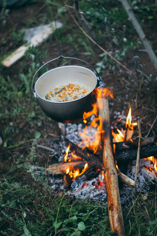 Z gałęzi budujemy trójnóg, wieszamy na nim garnek kupiony w Irkucku i robimy sobie obiad - ryż z suszonymi warzywami (które spisały się rewelacyjnie!) i złowioną rybką. Gdy się ściemnia, wchodzimy do jednego namiotu i na tablecie, który wzięliśmy ze sobą zaczynamy oglądać rewelacyjny “Powrót do przyszłości”. To niesamowite, jak będąc w głębi syberyjskich lasów, gdzie nie było już zasięgu GSM, mogliśmy obejrzeć jeden z ulubionych filmów w Kinie Las. Po filmie i długich nocnych rozmowach idziemy spać.