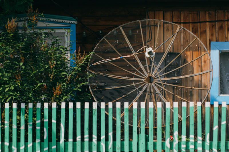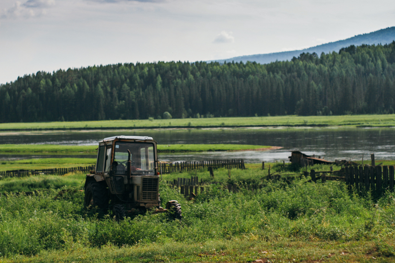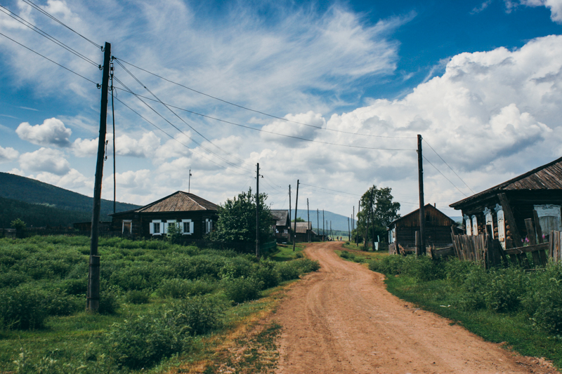 Ojciec poszedł do wsi, a my się przebieramy i pakujemy najcenniejsze rzeczy do podręcznego plecaka. Wieś jest całkiem spora, są tu dwa sklepy (ros. Магазин). Kupujemy trochę cukru i słodyczy. Dowiadujemy się, że w kolejnej wiosce podobno mieszkali kiedyś Polacy. Klimat niesamowity - nie ma żadnych oznaczeń ani nic takiego, sklep to po prostu jeden z pokojów w zwyczajnym, drewnianym domu. W korytarzu stoją upakowane ciasno opakowania z cukrem i mąką, na ladzie leży liczydło, izba jest słabo oświetlona przez jedną, zwisającą z sufitu żarówkę. Zwiedzamy okolicę. Ktoś nas mija na motorze. Naszą uwagę przykuwają liście konopi. Zapewne i tutaj jest nielegalna, ale ponad pięć tysięcy kilometrów od Moskwy jest jedynie chwastem. Michał zrywa liść i bierze ze sobą, zastanawia się czy nie przemycić do Polski (pół żartem, pół serio). Kawałek dalej stoi cerkiew. Pusta i grożąca zawaleniem - została zamknięta około sto lat temu, zapewne przez komunistyczy rząd.