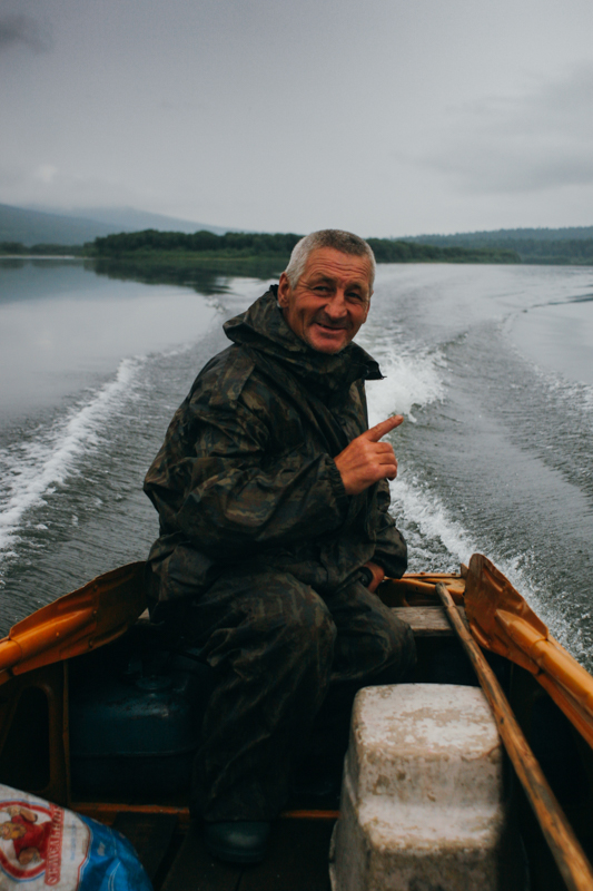 W ciągu kolejnej godziny rozpogadza się - wychodzi słońce, powoli robi się coraz cieplej. Jeszcze nie ma meszek - to chyba największa zaleta deszczu. Po tej godzinie zaczepia nas na rzece starszy mężczyzna w pomarańczowej motorówce. Włodzimierz, bo jak się okazuje, tak ma na imię, wozi towary do sklepów wzdłuż rzeki, aż z Żygałowa (w naszych głowach pojawia się myśl, że to cenny kontakt, być może okazja do załatwienia transportu). Z nim rozmawiamy stosunkowo długo bo ponad godzinę. Opowiada całkiem ciekawie. Tubylcy nie lubią rosyjskich turystów, którzy podróżują tu w “burżujski” sposób - przylatują swoimi helikopterami, i traktują ich z góry. Ale tacy jak my to co innego, można porozmawiać jak człowiek z człowiekiem. Tematy płynnie się zmieniają - podobno wbrew pozorom, dużo ludzi tu przyjeżdża - w Irkucku jest klub speleologiczny, bo w tych terenach są ogromne jaskinie. Najciekawsza jak dla mnie historia dotyczy Japończyków. Podobno Na Syberię przyjechali Japończycy, ponieważ potrzebowali cerkwii do jednego z swoich filmów. Przylecieli helikopterami i zwyczajnie przenieśli sobie cerkiew na oddalony o kilkaset kilometrów plan filmowy. Ciekawe ile ich to kosztowało. Po jakimś czasie Włodzimierz postanawia pokazać nam, jak łowi się ryby siecią, ale ostrzega, że to jest tutaj nielegalne i nerwowo się rozgląda co jakiś czas, czy nikt go nie złapie. Michał wsiada na jego łódź, holują nas kawałek i rozwieszają sieć między naszą tratwą a jego motorówką. Tata mi mówi, że jeszcze jeden papieros od naszego nowego przyjaciela i po prostu nie wytrzyma. Podobno są strasznie mocne. A tutaj papierosy to codzienność i każdy wprawiony podróżnik wie, że na wschodzie są, obok wódki, najlepszą walutą.